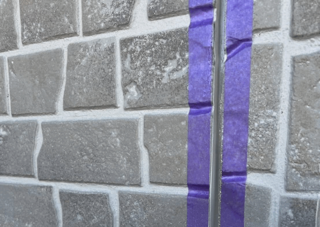 2)溝の両脇をテープで養生をし、必要に応じてバックアップ材を入れます。