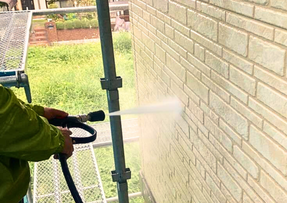 足場設置後、外壁や屋根の高圧洗浄を行います。汚れやカビを徹底的に除去し、塗装の密着性を高めます。洗浄作業は入居者様の生活への影響を考慮し、適切な時間帯に実施します。